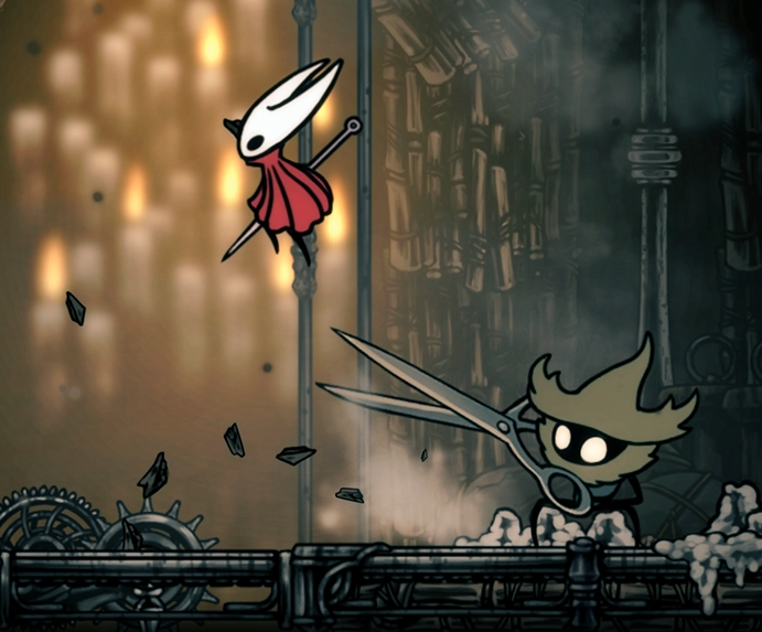 앞에서 공격할 경우 가위로 막기 때문에 가급적 점프해서 뒤로 가서 공격해야함.