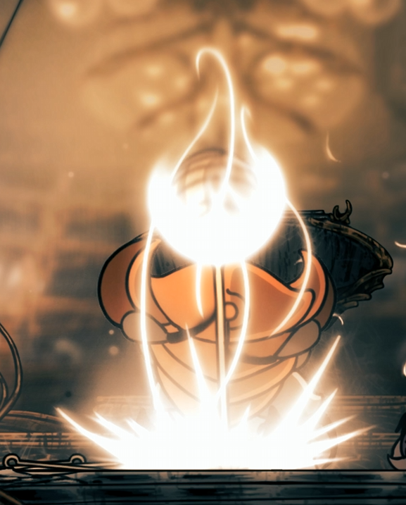 빛을 모은 다음 바닥에 내리찍기. 동그란 빛의 잔상들이 생기며 맞을 수 있으니 점프로 피해줄것.